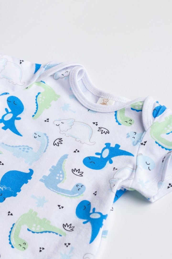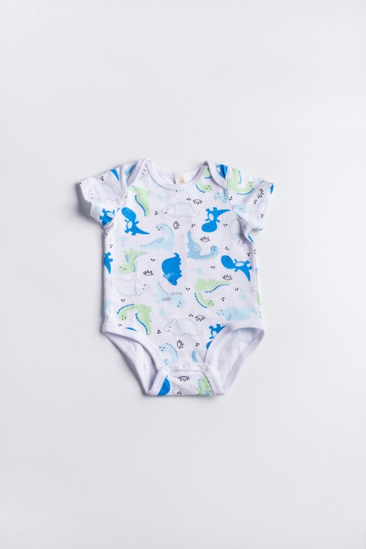 Romper with round neckline and short sleeve. Featuring all-over graphic prints. . Press-stud on the crotch.