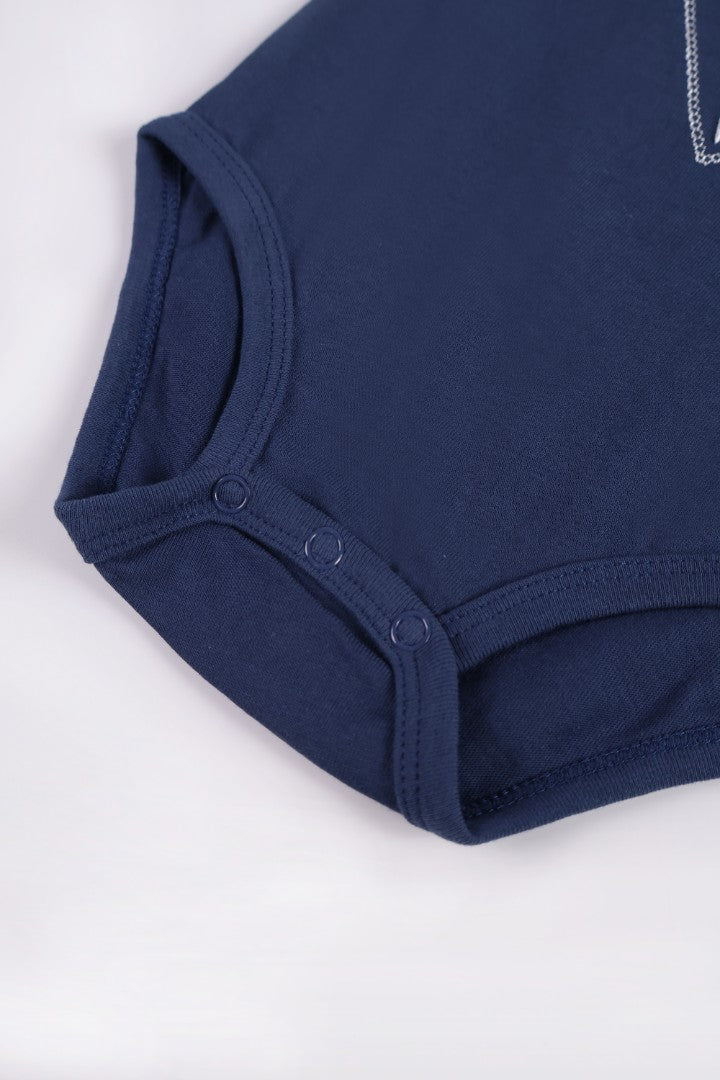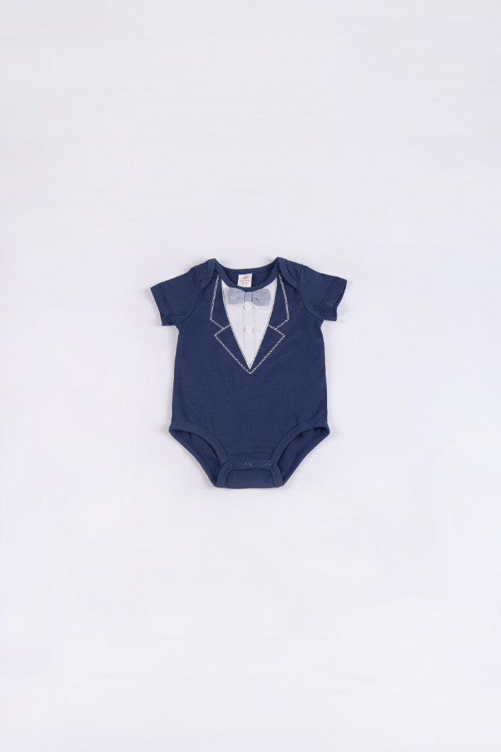 Romper with round neckline and short sleeve. Featuring a bow-tie. Press-stud on the crotch.